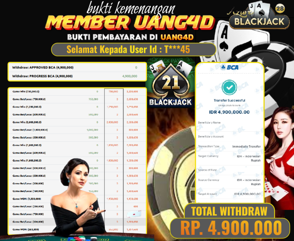 UANG4D – JACKPOT Live Games PP-Blackjack 04 APRIL 2025, Jackpot Slot, Kemenangan Slot, Bukti Kemenangan Slot, Kemenangan Live Games PP-Blackjack, Menang Slot online, Slot Gacor, Situs Aman Terpercaya, Withdraw Berapapun Pasti DI Bayar Tuntas, Maxwin Slot Online.