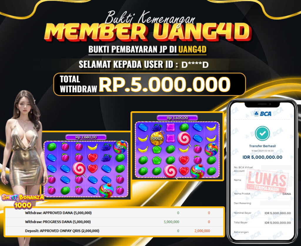UANG4D– JACKPOT SLOT GACOR SWEET BONANZA x1000 16 APRIL 2025, Jackpot Slot, Kemenangan Slot, Bukti Kemenangan Slot, Kemenangan Slot Pragmatic Play, Menang Slot online, Slot Gacor, Situs Aman Terpercaya, WD Berapapun Pasti DI Bayar Tuntas, Maxwin Slot Online.