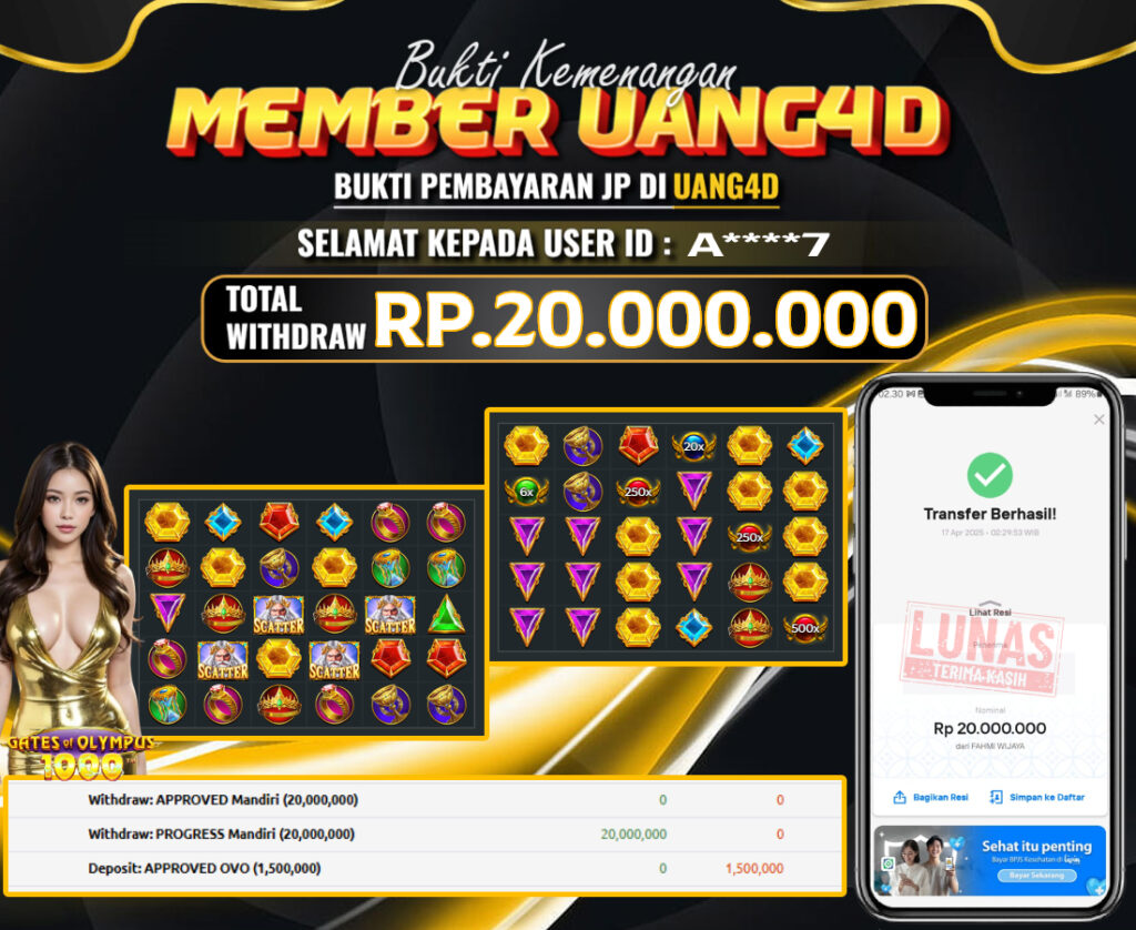 UANG4D JACKPOT SLOT OLYMPUS 1000 17 APRIL 2025, Kemenangan Slot, Bukti Kemenangan Slot, Kemenangan Slot Pragmatic Play, Menang Slot online, Slot Gacor, Situs Aman Terpercaya, Withdraw Berapapun Pasti DI Bayar Tuntas, Maxwin Slot Online.