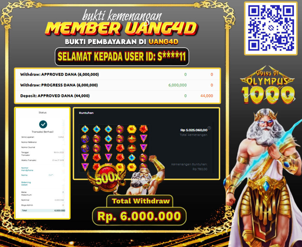 UANG4D –JACKPOT SLOT OLYMPUS 1000 18 APRIL 2025, Kemenangan Slot, Bukti Kemenangan Slot, Kemenangan Slot Pragmatic Play, Menang Slot online, Slot Gacor, Situs Aman Terpercaya, Withdraw Berapapun Pasti DI Bayar Tuntas, Maxwin Slot Online.