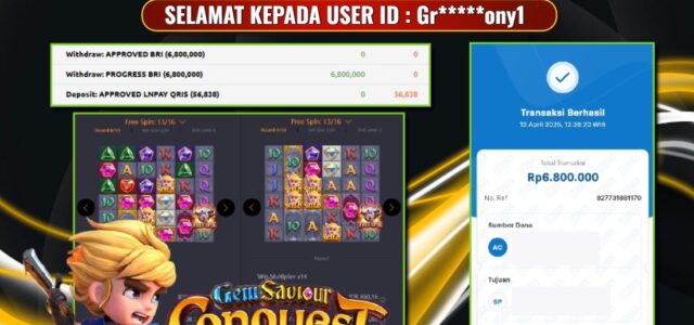 UANG4D –JACKPOT SLOT SLOT-GEM-SAVIOUR-CONQUEST 13 APRIL 2025, Kemenangan Slot, Bukti Kemenangan Slot, Kemenangan Slot Pragmatic Play, Menang Slot online, Slot Gacor, Situs Aman Terpercaya, Withdraw Berapapun Pasti DI Bayar Tuntas, Maxwin Slot Online.