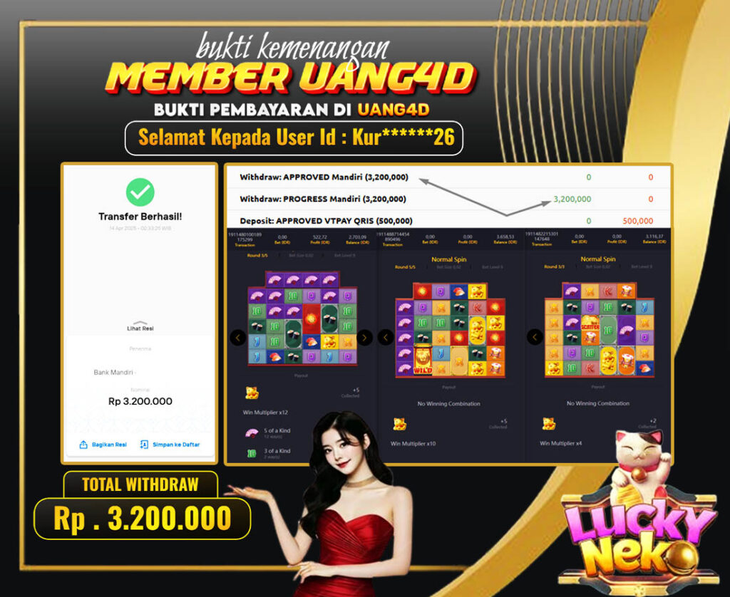UANG4D –JACKPOT SLOT LUCKY – NEKO 14 APRIL 2025, Kemenangan Slot, Bukti Kemenangan Slot, Kemenangan Slot PG Soft, Menang Slot online, Slot Gacor, Situs Aman Terpercaya, Withdraw Berapapun Pasti DI Bayar Tuntas, Maxwin Slot Online.