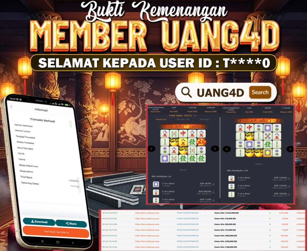 UANG4D –JACKPOT SLOT MAHYONG WAYS 09 OKTOBER 2025 , Jackpot Slot, Kemenangan Slot, Bukti Kemenangan Slot, Kemenangan Slot PG SOFT Play, Menang Slot online, Slot Gacor, Situs Aman Terpercaya, Withdraw Berapapun Pasti DI Bayar Tuntas, Maxwin Slot Online.