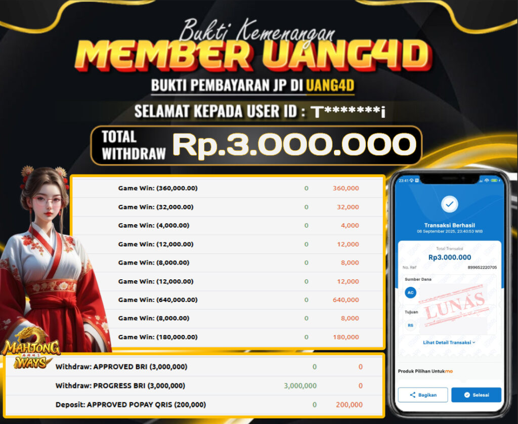 UANG4D JACKPOT SLOT MAHYONG WAYS 09 SEPTEMBER 2025 , Jackpot Slot, Kemenangan Slot, Bukti Kemenangan Slot, Kemenangan Slot PG SOFT Play, Menang Slot online, Slot Gacor, Situs Aman Terpercaya, Withdraw Berapapun Pasti DI Bayar Tuntas, Maxwin Slot Online.