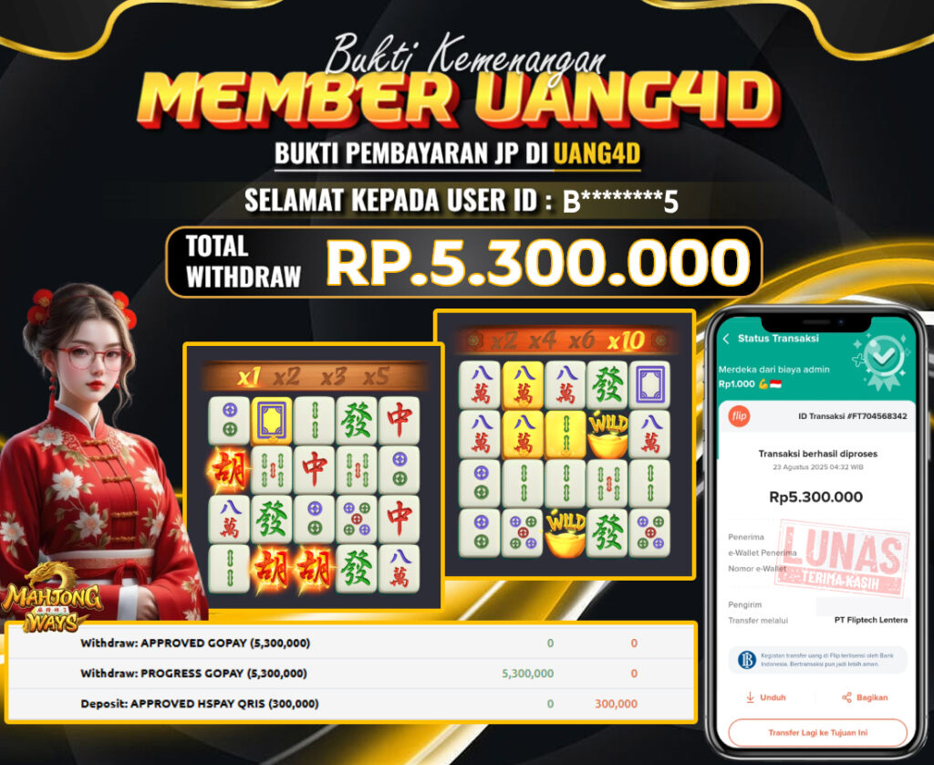 UANG4D – JACKPOT SLOT MAHYONG WAYS 23 AGUSTUS 2025 , Jackpot Slot, Kemenangan Slot, Bukti Kemenangan Slot, Kemenangan Slot PG SOFT Play, Menang Slot online, Slot Gacor, Situs Aman Terpercaya, Withdraw Berapapun Pasti DI Bayar Tuntas, Maxwin Slot Online.