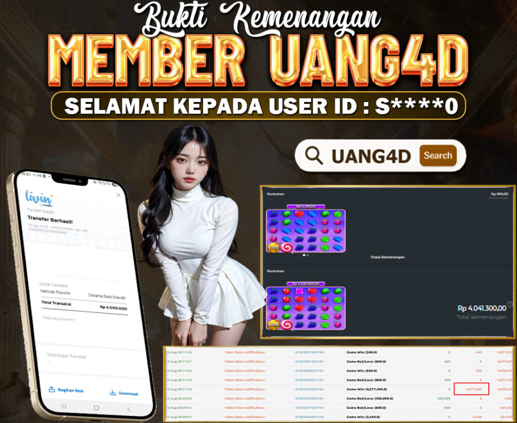 Jangan lewatkan kesempatan untuk meraih kemenangan besar. Daftar sekarang di UANG4D dan rasakan pengalaman bermain slot terbaik yang pernah ada! Putar gulungan, menangkan jackpot, dan jadilah bagian dari komunitas pemain sukses kami!