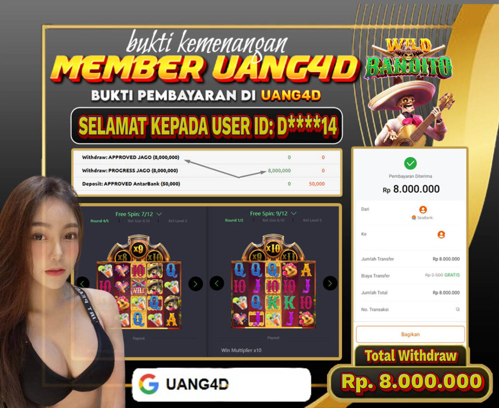 UANG4D –JACKPOT SLOT Wild-Bandito 19 APRIL 2025, Kemenangan Slot, Bukti Kemenangan Slot, Kemenangan Slot Pragmatic Play, Menang Slot online, Slot Gacor, Situs Aman Terpercaya, Withdraw Berapapun Pasti DI Bayar Tuntas, Maxwin Slot Online.