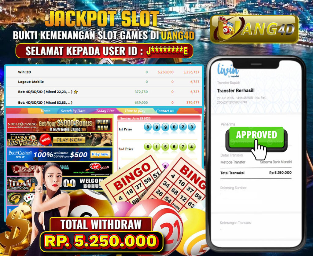 UANG4D dikenal sebagai situs terpercaya yang selalu menghadirkan pengalaman bermain slot online yang aman, fair, dan berlisensi resmi. Di sini, kami tidak hanya sekadar memberikan janji, tapi bukti nyata berupa slip kemenangan yang dapat Anda lihat secara langsung.